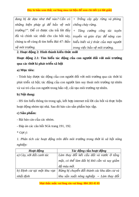 Đây là bản xem th , vu ử i lòng mua tài li u ệ đ xe ể m chi ti t ế (có l i ờ gi i ả ) - HS trả l i ờ câu h i ỏ mở đ u. ầ c) S n ph ả m ẩ : - Đáp án cho câu h i ỏ m đ ở u. ầ d) T ch ổ ức thực hi n: ệ Hoạt đ ng c ộ a gi ủ áo viên và h c s ọ inh N i ộ dung Bư c ớ 1: Chuy n gi ể ao nhi m ệ v : ụ - Các câu trả l i ờ c a ủ HS: