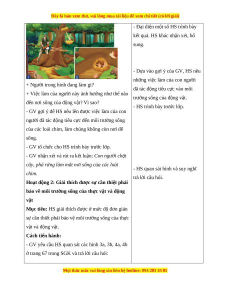 Giáo án Bảo vệ môi trường sống của thực vật và động vật TNXH lớp 2 Chân trời sáng tạo
