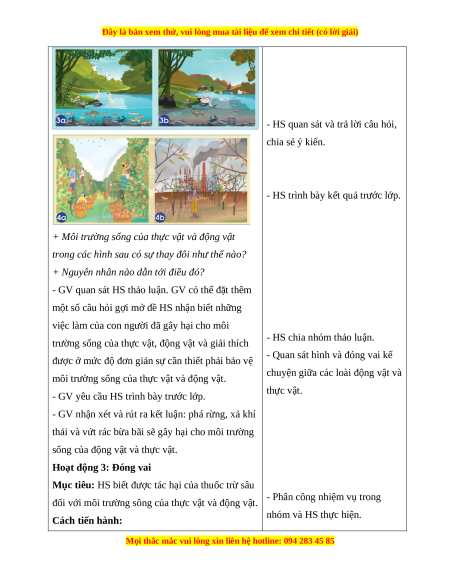 sự cần thiết phải bảo vệ môi trường sống của thực vật và động vật. Cách tiến hành: