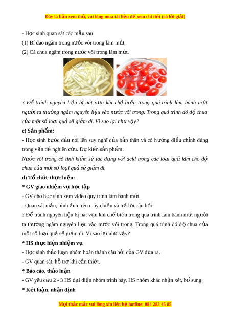 (1) Bi đao ngâm trong nư c vôi ơ trong lam m t ư ; (2) Ca chua ngâm trong nư c ơ vôi trong lam m t ư . ? Đ ê tranh nguyên li u ê b inat v n u khi ch ê bi n