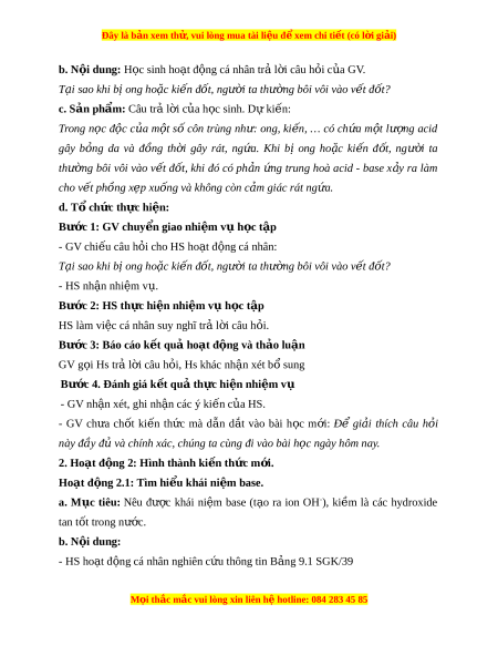Đây là bản xem th , vu ử i lòng mua tài li u ệ đ xe ể m chi ti t (c ế ó l i ờ gi i ả ) b. N i ộ dung: H c s ọ inh ho t ạ đ ng cá ộ nhân trả l i ờ câu h i ỏ c a ủ GV. T i ạ sao khi b ong ho ị c ặ ki n đ ế ốt, ngư i ờ ta thư ng bôi ờ vôi vào v t ế đ t ố ?