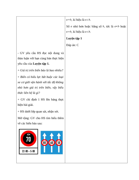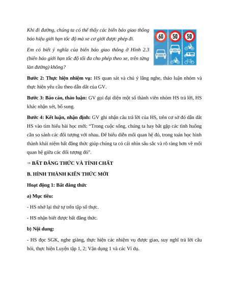 Bước 1: Chuyển giao nhiệm vụ: 1. Bất đẳng thức