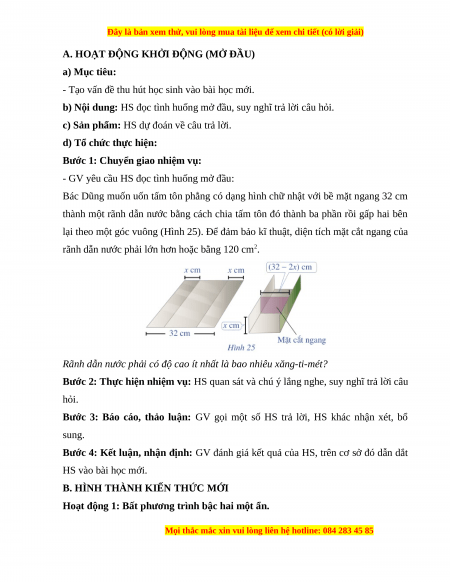 - HS giải được phương trình bậc hai một ẩn. b) Nội dung: