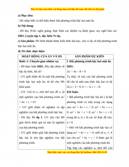 - HS nhận biết và thể hiện được bất phương trình bậc hai một ẩn. b) Nội dung: