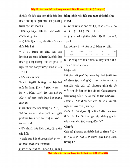 nhận kiến thức, hoàn thành các yêu bất phương trình bậc hai ẩn x còn lại cầu.