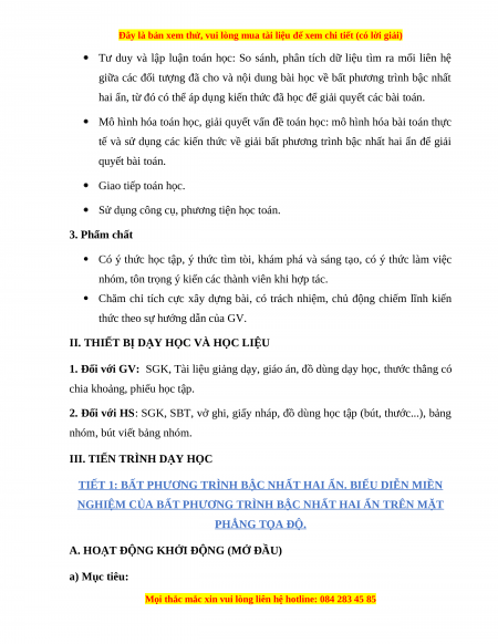 - HS nhận biết được phương trình bậc nhất hai ẩn và nghiệm của bất phương trình