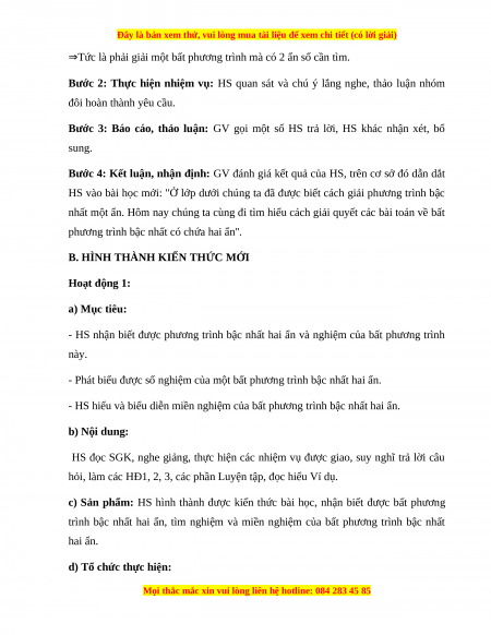 - HS hiểu và biểu diễn miền nghiệm của bất phương trình bậc nhất hai ẩn. b) Nội dung: