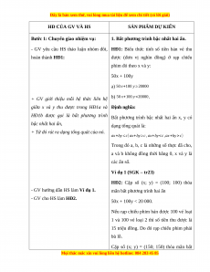 tế và sử dụng các kiến thức về giải bất phương trình bậc nhất hai ẩn để giải quyết bài toán. Giao tiếp toán học.