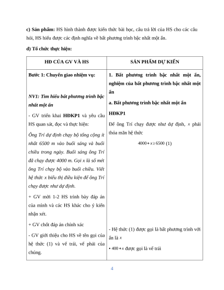 - Vận dụng định nghĩa để tìm nghiệm của bất phương trình bậc nhất một ẩn. b) Nội dung: