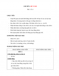 CHỦ ĐỀ 2: BÉ VÀ BÀ Bài 1: Ơ, ơ I.MỤC TIÊU