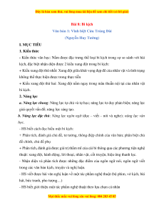 - Kiến thức văn học: Nắm được đặc trưng thể loại bi kịch trong sự so sánh với hài