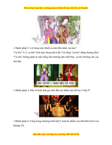 + Mảnh ghép 1: Đây là vở chèo cổ mà chúng ta đã được học ở lớp 7 và lớp 10