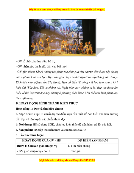 Kịch dân gian (Quan Âm Thị Kính), kịch cổ điển (Trưởng giả học làm sang), kịch