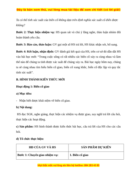 - Nhận biết được khái niệm về biến cố giao. b) Nội dung: