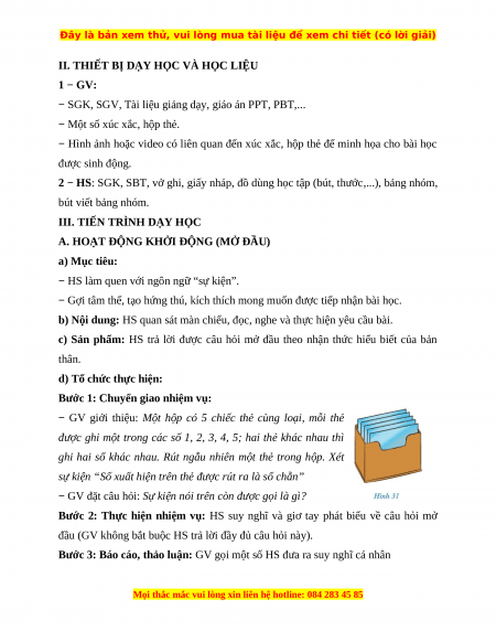 − Hình ảnh hoặc video có liên quan đến xúc xắc, hộp thẻ để minh họa cho bài học được sinh động.