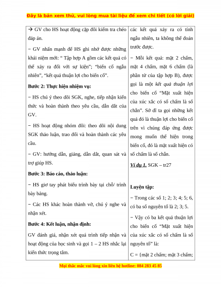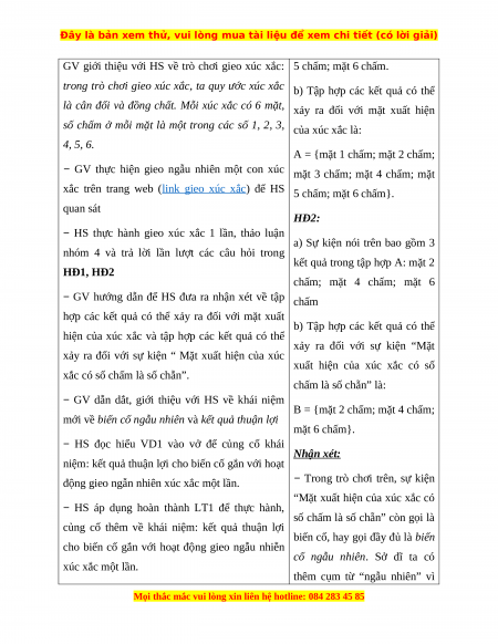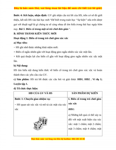 + Kết quả thuận lợi cho biến cố gắn với hoạt động gieo ngẫu nhiên xúc xắc một lần. b) Nội dung: