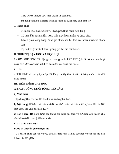 - Sử dụng công cụ, phương tiện học toán: sử dụng máy tính cầm tay. 3. Phẩm chất