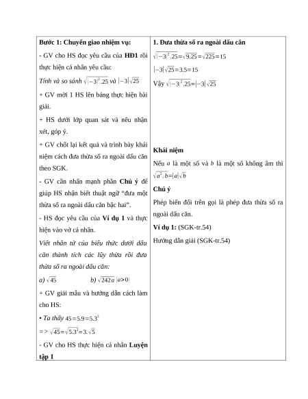 niệm cách đưa thừa số ra ngoài dấu căn Nếu a là một số và b là một số không âm thì theo SGK.