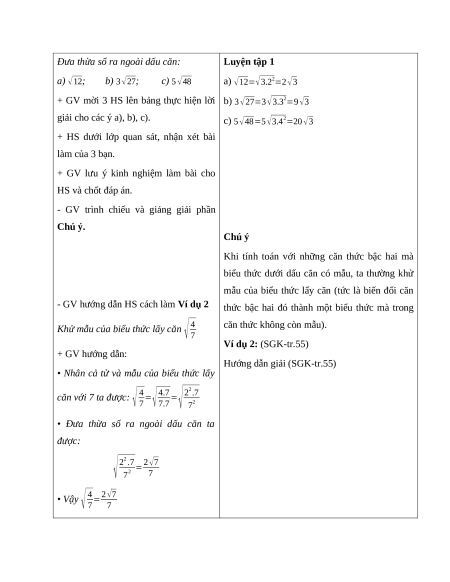 1. Đưa thừa số ra ngoài dấu căn