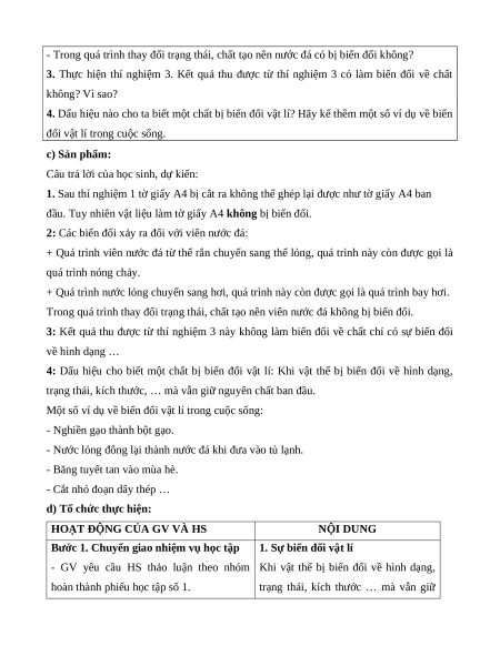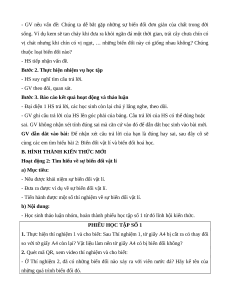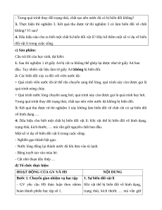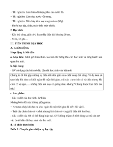 - Tiến hành được một số thí nghiệm về sự biến đổi vật lí. b) Nội dung: