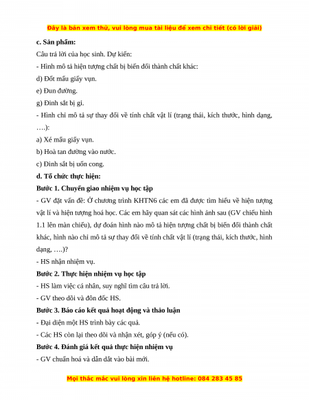 - Tiến hành được một số thí nghiệm về sự biến đổi vật lí và biến đổi hoá học. b. Năng lực chung