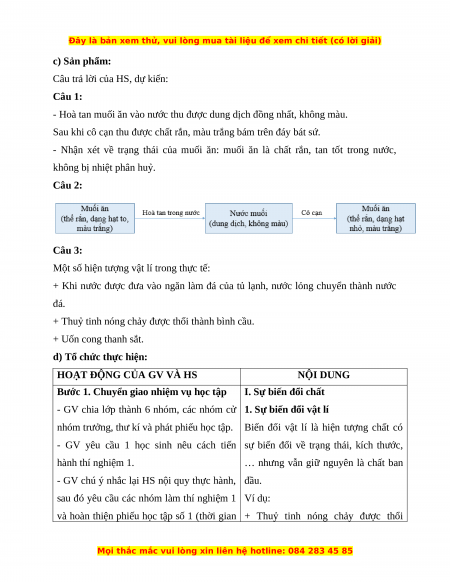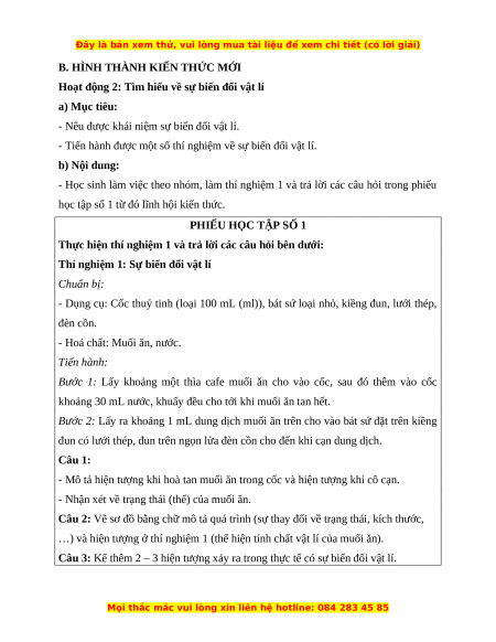 - Tiến hành được một số thí nghiệm về sự biến đổi vật lí. b) Nội dung: