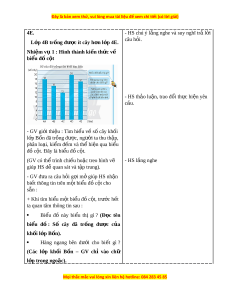 trên quan sát các số li u t ệ bi ừ u đ ể ồ c t ộ . (Năng l c t ự duy và ư l p l ậ u n t ậ oán h c) ọ . - V n ậ d ng ụ gi i ả quy t ế đư c ợ nh ng ữ v n ấ đề đ n ơ gi n ả liên quan đ n ế các số li u ệ thu đư c ợ t bi ừ u đ ể ồ c t ộ . (Năng l c m ự ô hình hóa toán h c) ọ . - Năng l c gi ự ao ti p t ế oán h c, gi ọ i ả quy t ế v n đ ấ t ề oán h c. ọ 2. Năng l c chung ự : - Năng l c ự giao ti p, ế h p ợ tác: Trao đ i ổ , th o ả lu n ậ v i ớ giáo viên và b n ạ bè để th c ự hi n các ệ nhi m ệ vụ h c t ọ p. ậ - Năng l c ự gi i ả quy t ế v n ấ đề và sáng t o: ạ Sử d ng ụ các ki n ế th c ứ đã h c ọ ng ứ d ng vào ụ th c t ự , t ế ìm tòi, phát hi n gi ệ i ả quy t ế các nhi m ệ v t ụ rong cu c s ộ ng. ố 3. Phẩm ch t ấ - Chăm ch : ỉ Chăm h c, ọ ham h c, ọ có tinh th n ầ tự h c; ọ ch u ị khó đ c ọ sách giáo khoa, tài li u và t ệ h c ự hi n các ệ nhi m ệ vụ cá nhân.