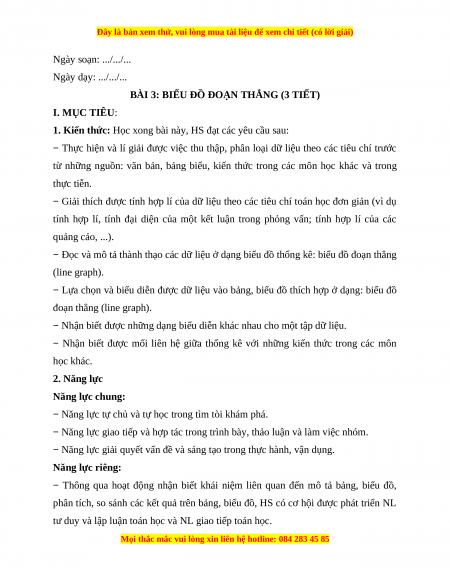 BÀI 3: BIỂU ĐỒ ĐOẠN THẲNG (3 TIẾT) I. MỤC TIÊU: