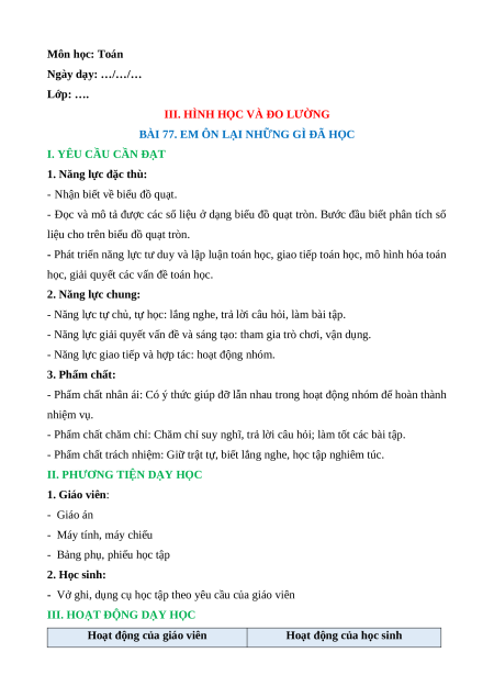 - Năng lực giao tiếp và hợp tác: hoạt động nhóm. 3. Phẩm chất: