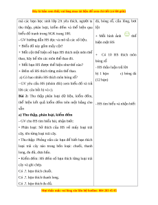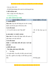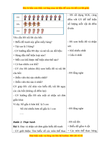 Đây là bản xem th , vu ử i lòng mua tài li u ệ đ xe ể m chi ti t (c ế ó l i ờ gi i ả ) - Giáo án, SGK, SGV. - 20 kh i ố l p ậ phư ng, b ơ c ứ tranh cho n i ộ dung bài h c ọ 2. Đ i ố v i ớ h c s ọ inh - SGK. v ghi ở , bút vi t ế , b ng con… ả - 10 kh i ố l p ậ phư ng ơ III. TI N Ế TRÌNH D Y Ạ H C Ọ HOẠT Đ N Ộ G C A Ủ GV HOẠT Đ N Ộ G C A Ủ HS A. KH I Ở Đ N Ộ G Mục tiêu: T o ạ tâm thế h ng ứ thú cho HS và t ng ừ bư c ớ cho HS làm quen v i ớ bài h c ọ m i ớ . Cách ti n hà ế nh: - GV cho HS ch i ơ trò ch i ơ “Bão th i ổ ” - HS cả l p ớ tham gia trò ch i ơ B. BÀI H C Ọ VÀ TH C Ự HÀNH Mục tiêu: HS nh n ậ bi t ế đư c ợ bi u ể đồ tranh và n m ắ đư c cách ợ đ c bi ọ u đ ể ồ Cách ti n hà ế nh: Bước 1: Gi i ớ thi u ệ bi u