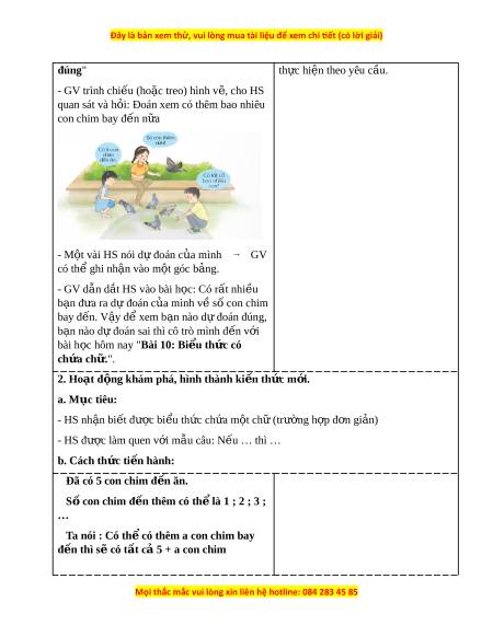 ự đoán sai thì cô trò mình đ n v ế i ớ bài h c hôm ọ nay "Bài 10: Bi u t ể h c có ứ chứa chữ.". 2. Hoạt đ ng khá ộ
