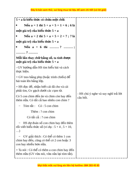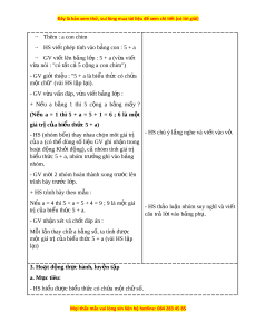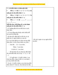 ứ ố (ví dụ : 5 + 4 , 5 + 10, …) → GV gi i ả thích : Có th có t ể hêm 1 con chim bay đ n, cũng có t ế hể có 2 con ho c ặ 3 con hay nhi u h ề n n ơ a. ữ + Ta nói : Có th có t ể hêm a con chim bay đ n ế thêm n a ( ữ GV v a ừ nói, v a s ừ a ử l i ạ tóm t t ắ ).