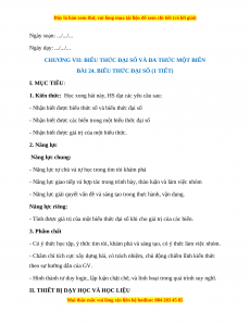 BÀI 24. BIỂU THỨC ĐẠI SỐ (1 TIẾT) I. MỤC TIÊU: