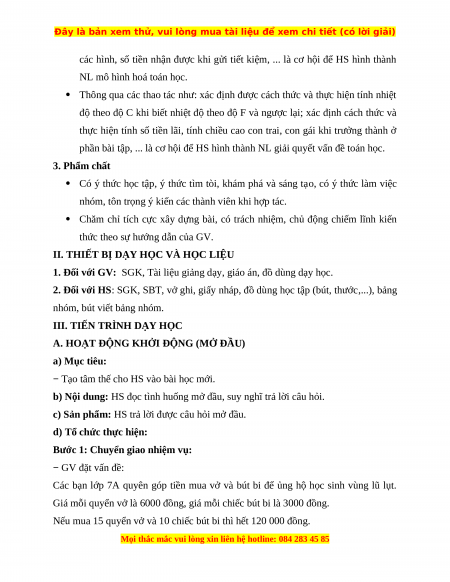 2. Đối với HS: SGK, SBT, vở ghi, giấy nháp, đồ dùng học tập (bút, thước,...), bảng