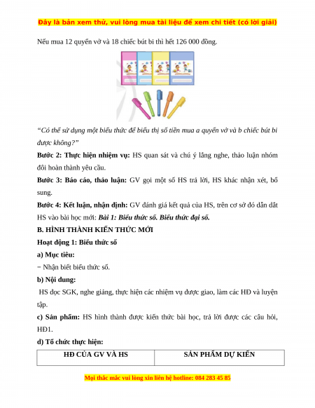 “Có thể sử dụng một biểu thức để biểu thị số tiền mua a quyển vở và b chiếc bút bi