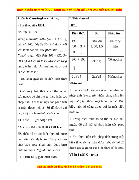 Hoạt động 1: Biểu thức số a) Mục tiêu: