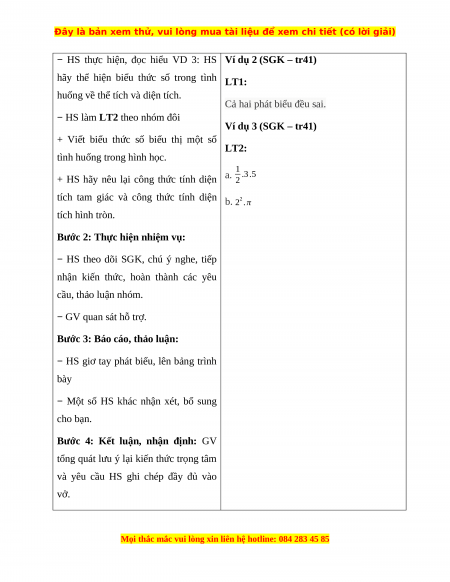 Giáo án Biểu thức số. Biểu thức đại số Toán 7 Cánh diều