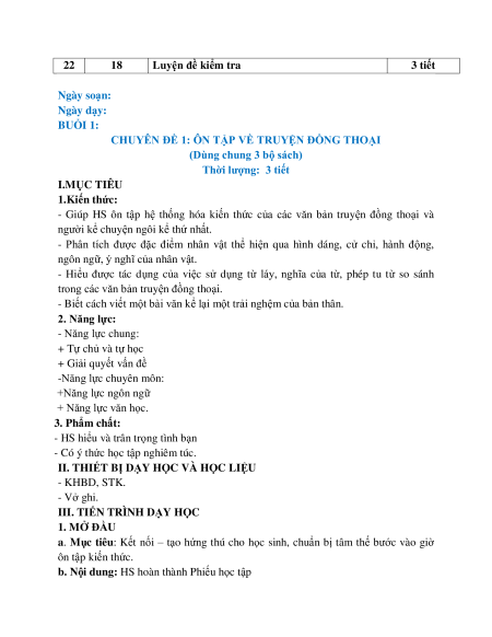 CHUYÊN ĐỀ 1: ÔN TẬP VỀ TRUYỆN ĐỒNG THOẠI