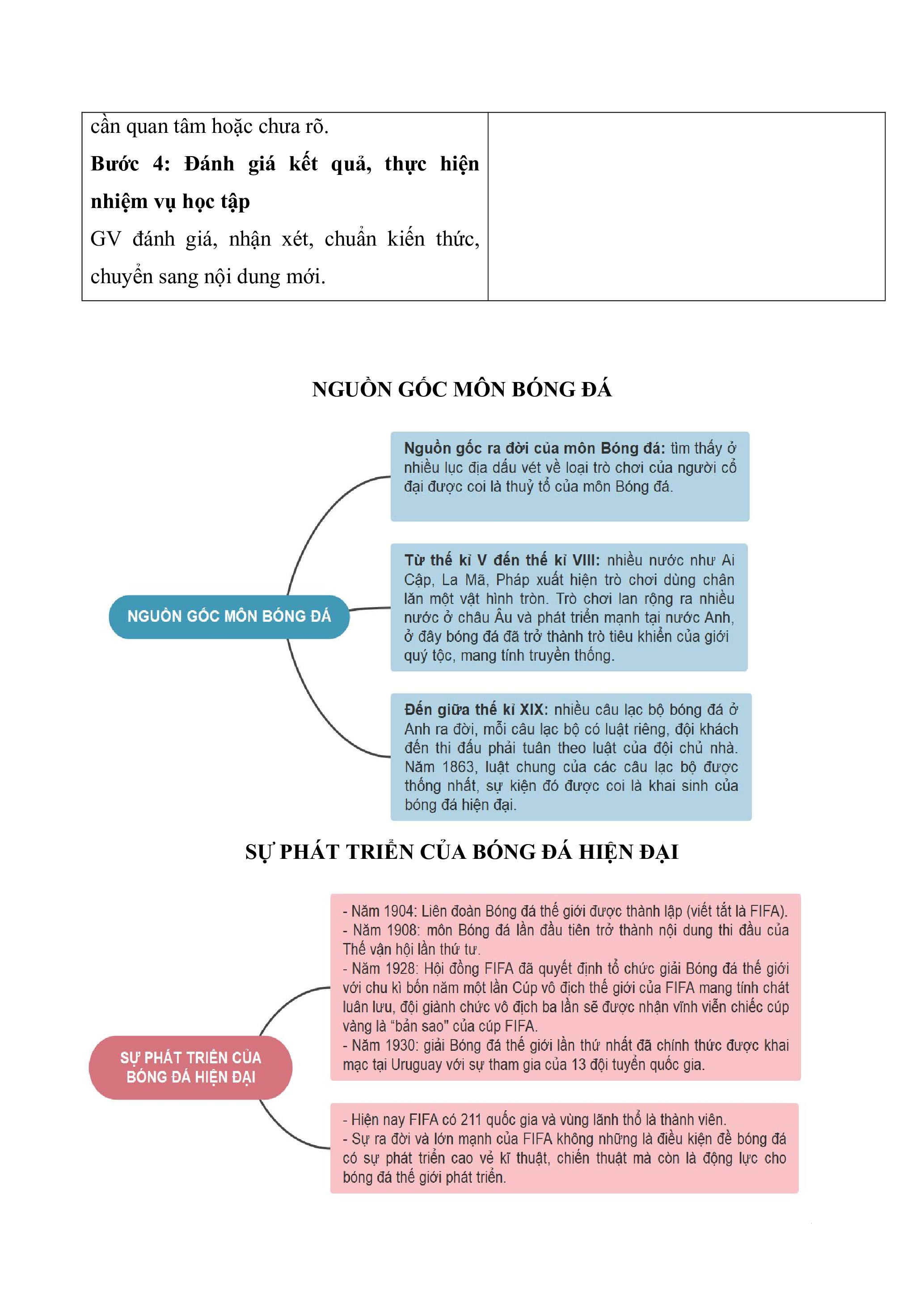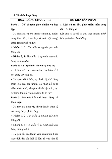 + Nhóm 3, 4: Tìm hiểu về sự phát triển của bóng đá hiện đại.