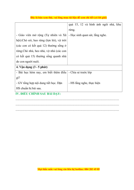 IV. ĐIỀU CHỈNH SAU BÀI DẠY: