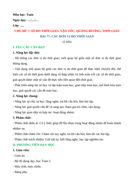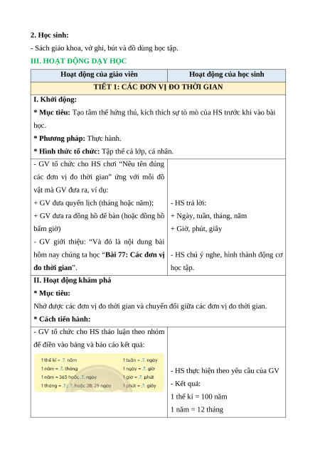 BÀI 77: CÁC ĐƠN VỊ ĐO THỜI GIAN (2 tiết)