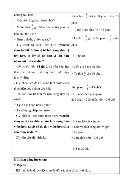 - HS thực hiện được việc chuyển đổi các đơn vị đo thời gian.
