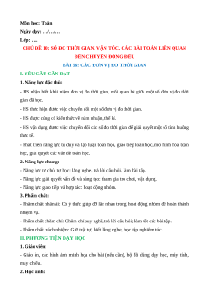 CHỦ ĐỀ 10: SỐ ĐO THỜI GIAN. VẬN TỐC. CÁC BÀI TOÁN LIÊN QUAN