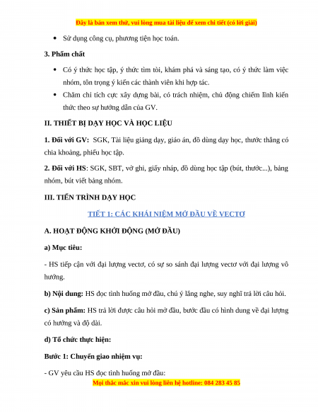 - HS tiếp cận với đại lượng vectơ, có sự so sánh đại lượng vectơ với đại lượng vô hướng.