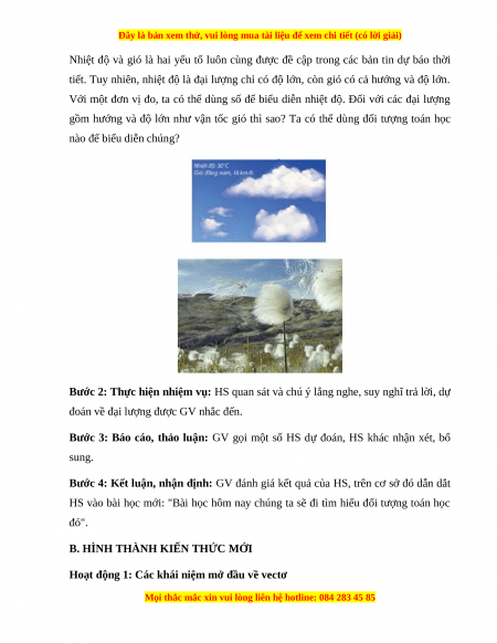 - HS tiếp cận với đại lượng vectơ, có sự so sánh đại lượng vectơ với đại lượng vô
