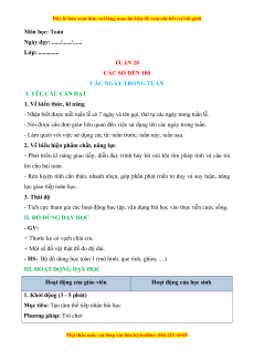Ngày dạy: ....../....../...... Lớp: .............. TUẦN 28 CÁC SỐ ĐẾN 100 CÁC NGÀY TRONG TUẦN I. YÊU CẦU CẦN ĐẠT