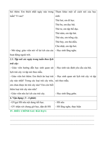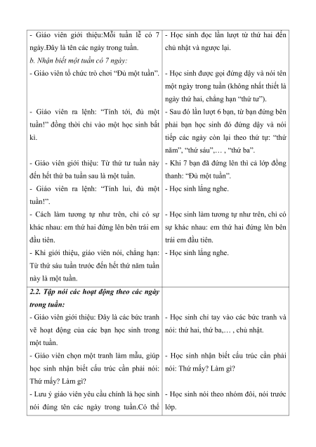 2.2. Tập nói các hoạt động theo các ngày trong tuần: