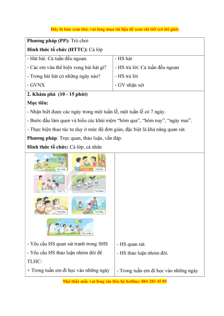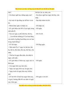 - Trong bài hát có những ngày nào? - HS trả lời - GVNX - GV nhận xét 2. Khám phá (10 - 15 phút) Mục tiêu: