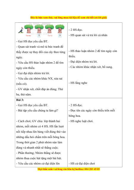 - Đọc tên các ngày còn thiếu trên mỗi