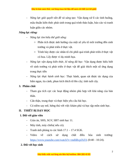 - Trình bày được các nhân tố chi phối quá trình phát triển ở thực vật có